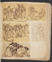Album Gatteaux dit "musée imaginaire". Album factice à couverture en vélin. Feuillets de deux papiers différents du fait de l'usage d'un papier plus fort et moins homogène pour le premier feuillet, puis du folio 36 recto au folio 40 verso. Au total 599 dessins répartis sur les premiers 134 feuillets. 596 dessins collés sur les pages de l'album et 3 dessins exécutés à même les pages de l'album. 592 dessins rapportés exécutés sur calque et 4 dessins rapportés exécutés sur papier. 23 dessins exécutés uniquement au graphite sur papier ou calque. 24 dessins exécutés à l'encre brune et/ou noire sur traces de graphite.552 dessins exécutés à l'encre seule, majoritairement brune mais de qualités différentes, parfois plus grise, d'autres fois plus noire. Plusieurs ensembles de feuillets vierges : du folio 30 recto au folio 35 verso inclus ; du folio 65 verso au feuillet 68 recto inclus ; du feuillet 72 verso au 75 verso inclus ; du feuillet 129 recto au feuillet 130 verso inclus. Feuillets vierges ou coupés à partir du folio 135 verso. Annotation à la plume et à l'encre brune de la main de Jacques-Edouard Gatteaux sur la contre-garde de la couverture: " E. Gatteaux. Rue de Bourbon n° 36 / Paris". Dimensions de l'album : H. 21 cm.; L. 17 cm. ; épaisseur du dos environ 3,2 cm.
