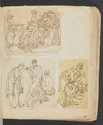 Album Gatteaux dit "musée imaginaire". Album factice à couverture en vélin. Feuillets de deux papiers différents du fait de l'usage d'un papier plus fort et moins homogène pour le premier feuillet, puis du folio 36 recto au folio 40 verso. Au total 599 dessins répartis sur les premiers 134 feuillets. 596 dessins collés sur les pages de l'album et 3 dessins exécutés à même les pages de l'album. 592 dessins rapportés exécutés sur calque et 4 dessins rapportés exécutés sur papier. 23 dessins exécutés uniquement au graphite sur papier ou calque. 24 dessins exécutés à l'encre brune et/ou noire sur traces de graphite.552 dessins exécutés à l'encre seule, majoritairement brune mais de qualités différentes, parfois plus grise, d'autres fois plus noire. Plusieurs ensembles de feuillets vierges : du folio 30 recto au folio 35 verso inclus ; du folio 65 verso au feuillet 68 recto inclus ; du feuillet 72 verso au 75 verso inclus ; du feuillet 129 recto au feuillet 130 verso inclus. Feuillets vierges ou coupés à partir du folio 135 verso. Annotation à la plume et à l'encre brune de la main de Jacques-Edouard Gatteaux sur la contre-garde de la couverture: " E. Gatteaux. Rue de Bourbon n° 36 / Paris". Dimensions de l'album : H. 21 cm.; L. 17 cm. ; épaisseur du dos environ 3,2 cm.