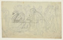 Un cygne, une femme drapée agenouillée, pleurant, et un homme nu, acéphale, gisant à terre